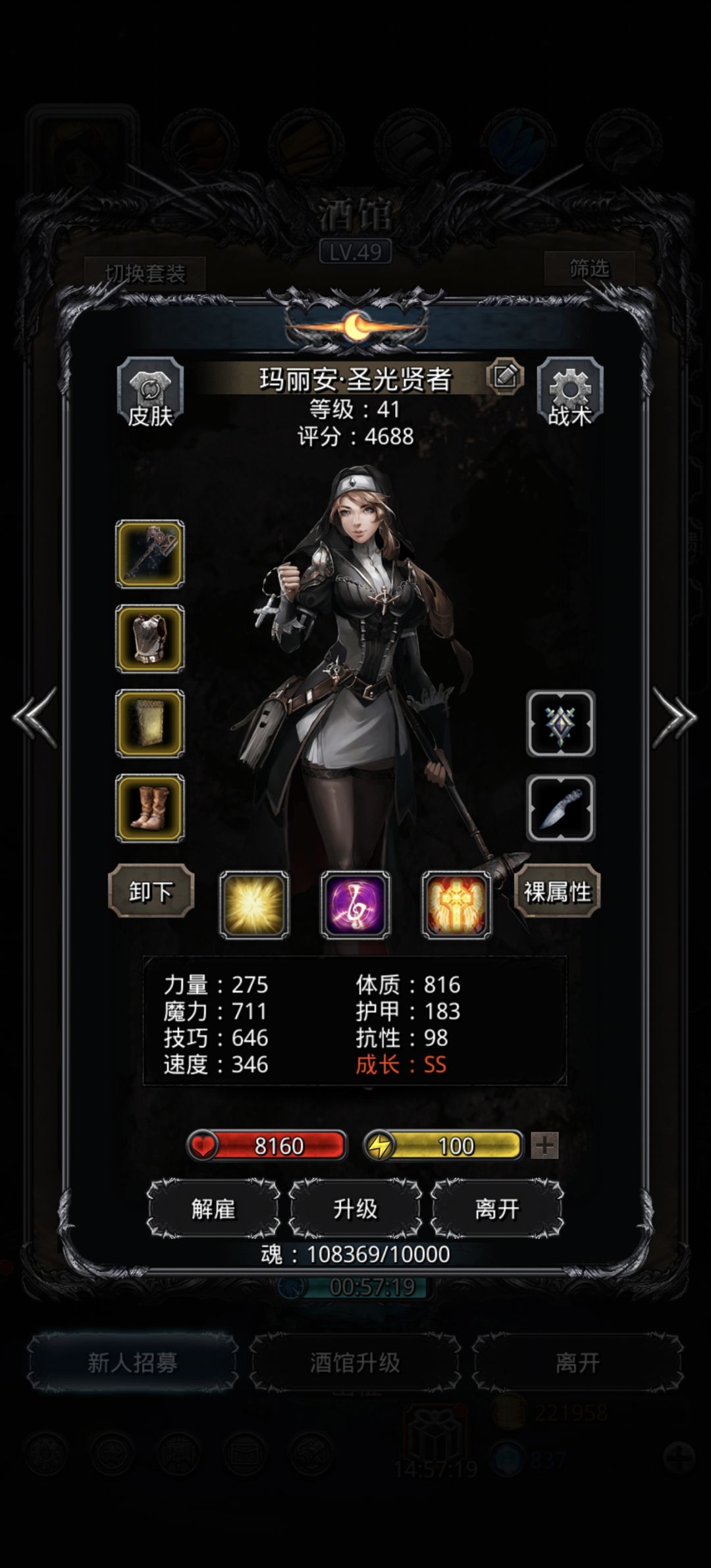 经过几天的尝试,我发现打单水海神的阵容里面圣骑士的用途还是太少了,硬抗是扛不住的,奶是奶不够的,甚至打小怪都不能开嘲讽两斧子就死了,所以我拿出来地堡最常用的职业——伟大的法师