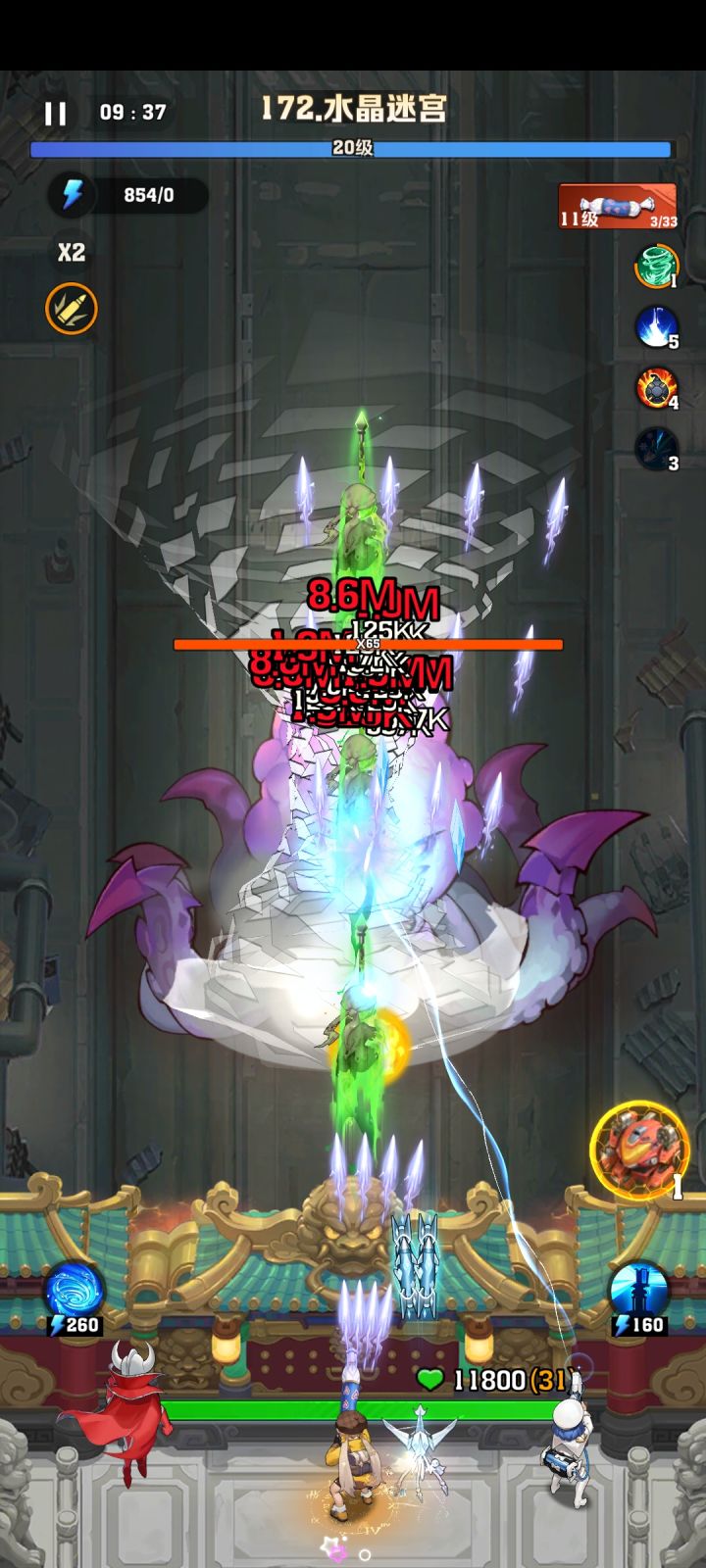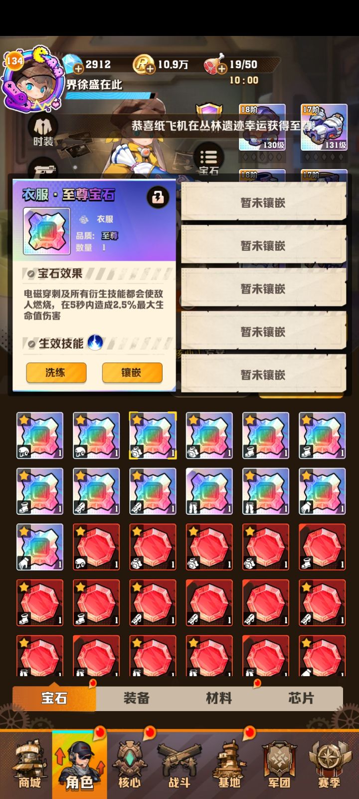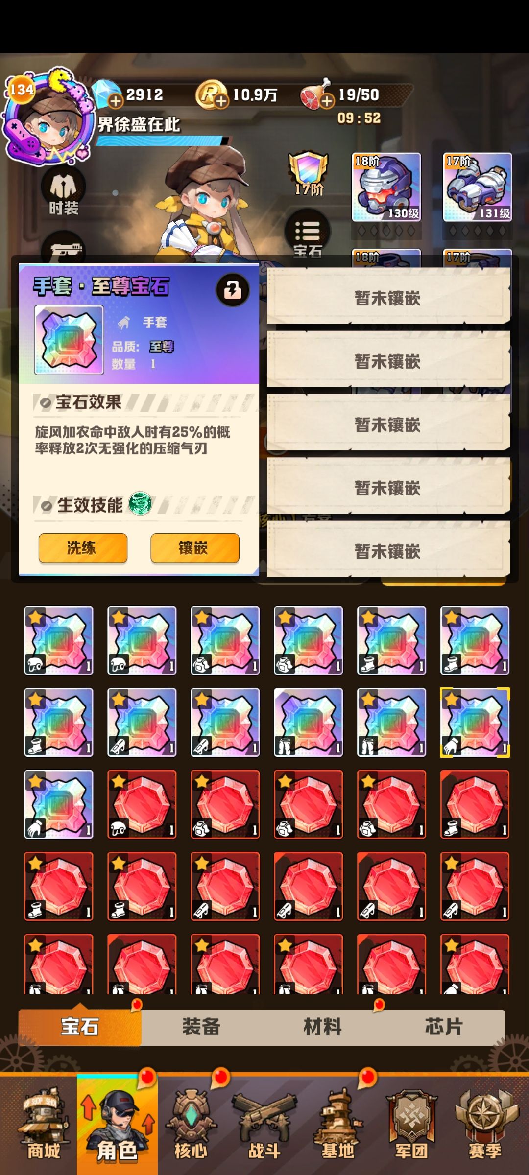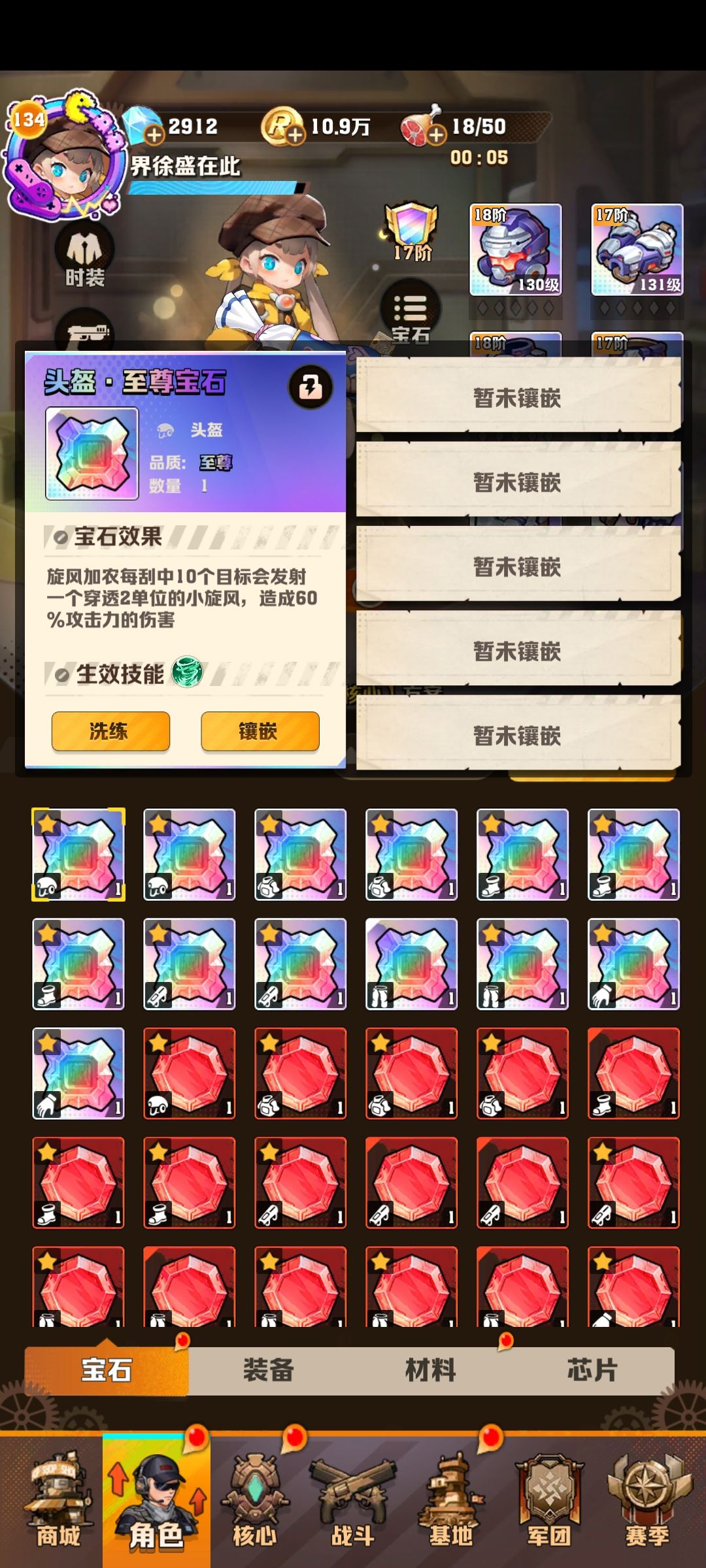 这种打法的关键。一是技能必须要有燃油弹(不强制要有次数+1),二是防线免伤次数要多,三是前期的小兵要能全部清掉,不能让他们碰到防线。前面两点不用多说,第三点上,为了能清兵,我觉得比较好用的是我列出来的这三个宝石,能够大大提升攻击次数的同时能够有一定的聚兵能力。