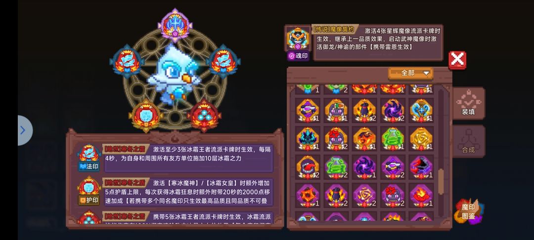 因为新冰卡的出现,让冰印强度提了一波,所以赌出来冰魂印的可以选择如图保留,其中寒冬之盾可以多保留一个,一些流派都会选择鞋带寒冰魔神卡牌,所以会有用到。不玩冰流可以选择分解。