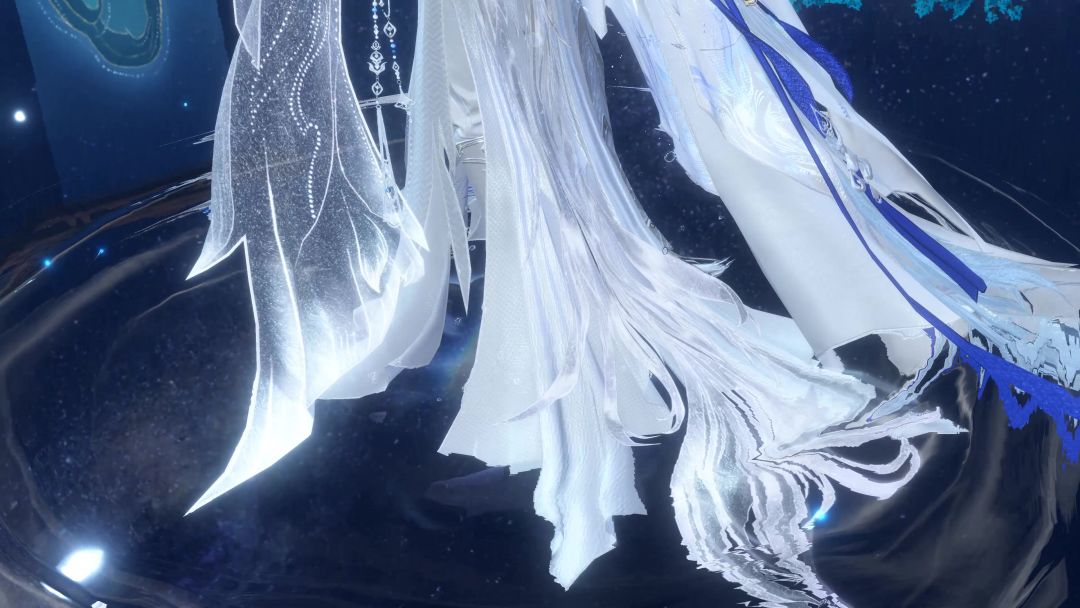 洁白与金色的搭配,高贵且不失柔美。白色长裙轻柔飘逸,如同云朵般轻盈,金色边饰与细节装饰巧妙地点缀其上,背后的金色光环如同太阳般耀眼,增添了一份神圣与不可侵犯的气息。头饰上的金色饰品与长裙上的金色边饰相呼应。蓝色的丝带在女性角色的时装中则更加灵动飘逸,如同轻盈的羽毛,在微风中轻轻摇曳,为整体增添了一份柔美与灵动。