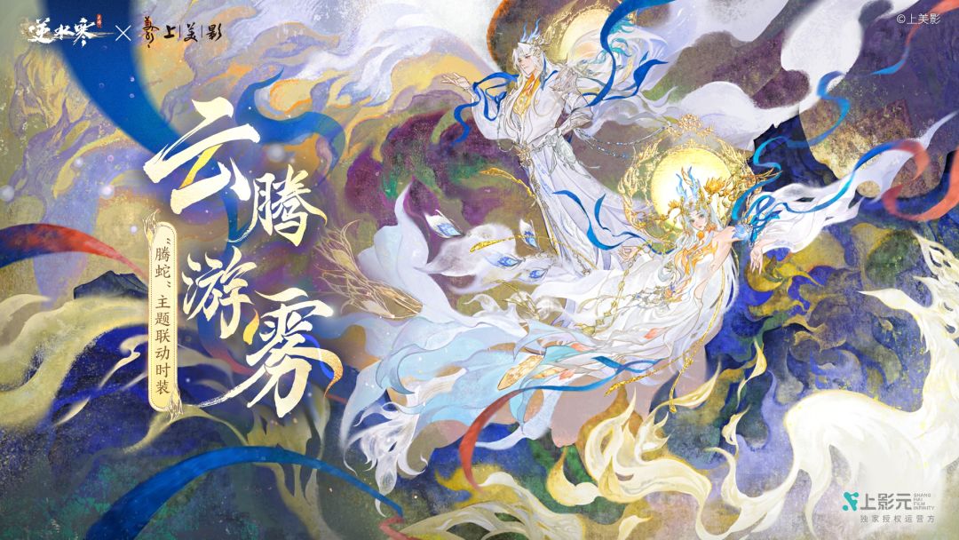 而在会呼吸的江湖,您也将有机会见到这传说中的瑰丽神兽!由上影元文化授权,逆水寒与上海美术电影制片厂(上美影)两大国风文化领域的佼佼者强强联手,以华夏神兽“腾蛇”为灵感,共同为大家献上一款全新时装【云腾游雾】。
