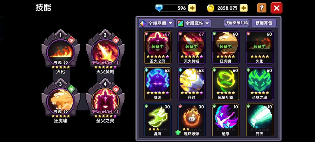 技能共鸣需要有四个技能进行聚合,共鸣等级继承这四个技能中最低的那个技能的等级(木桶能盛多少水取决于最短的那块木板),自亚斯塔禄之后的魔女技能可以享受所共鸣的等级。因为新魔女的技能突破包都包含一紫一橙两个技能,所以一般聚合两种魔女的技能,我们只需要升级这两种魔女的四个技能即可。