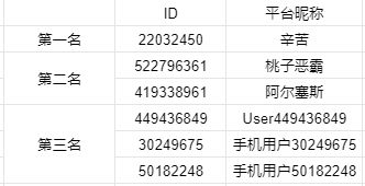 感谢大家对此次活动的参与和支持,以下为获奖名单,请大家联系客服QQ:2142557339领取奖励,后续我们会陆续推出更多福利活动,祝大家游戏愉快!