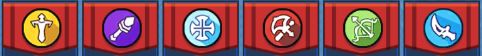 ②职业:如图,依次是骑士、法师、牧师(奶妈)、战士、射手(游侠/枪)和刺客;