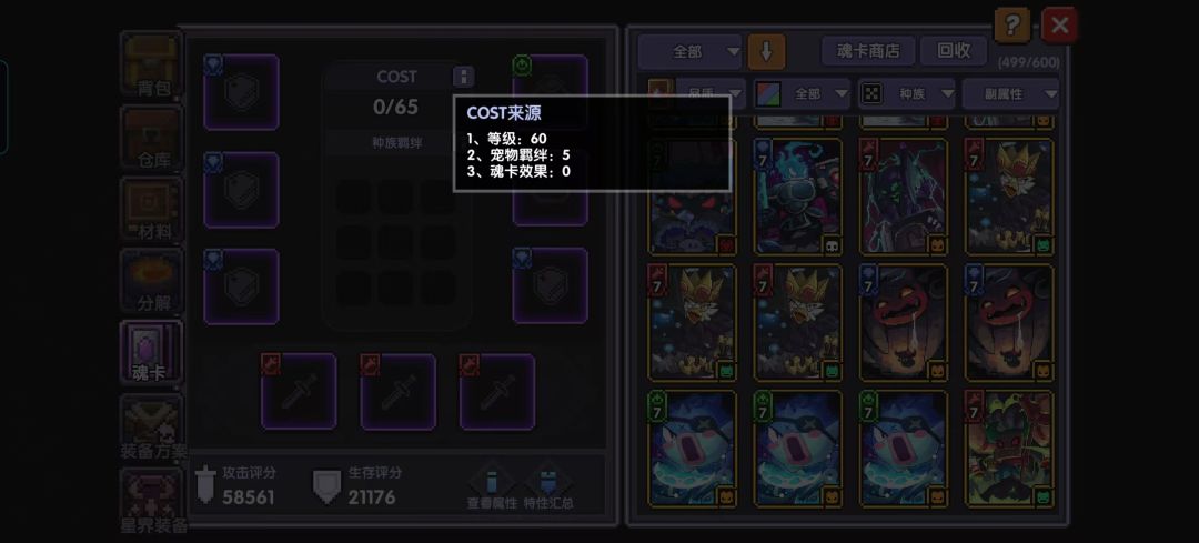 注意:公会宠物羁绊和自身宠物羁绊不可叠加,若未穿戴上述堕天使魂卡则COST最高为65点。