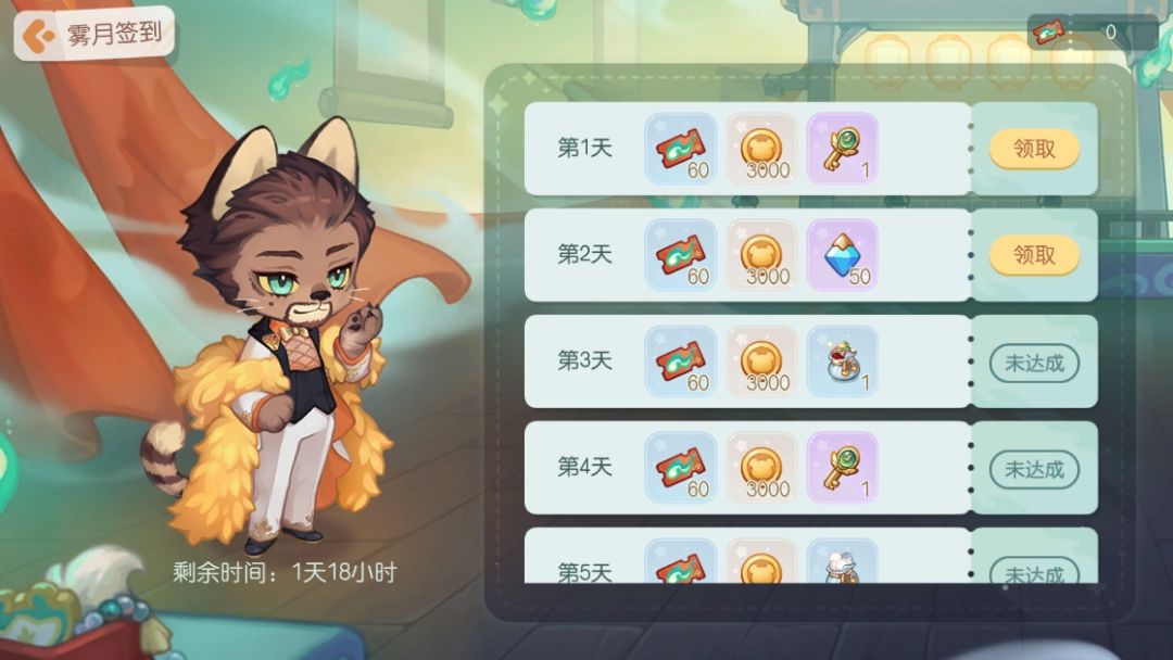 活动介绍:雾月剧团的演出即将开始,请各位奥比提前入场,进行签到检票。每日前往活动签到可获得主题活动奖励,活动期间内完成每日签到,可以获得「雾月票根」、「晶钻」、「时空之钥」、「晶钻服装彩蛋锤」、稀有头像框「妖火弥漫」、称号「大王叫我来巡山」等奖励哦!