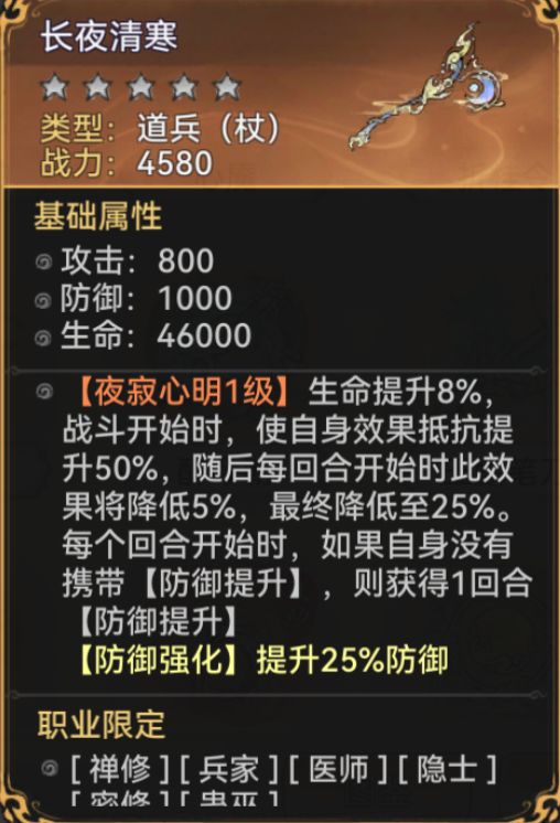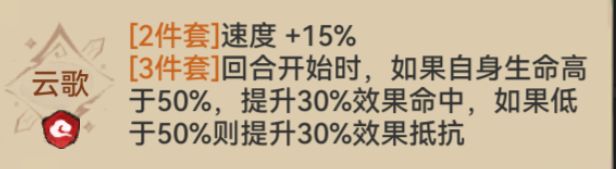 总结:装备套装选择2+2,云歌必备,其他2件选择普渡或者其他生命值加成的套装。装备词条优先级:生命值百分比>效果抵抗>治疗效果百分比>速度。武器选择幡来凑效果抵抗。