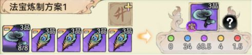 关于主法宝的属性那毫无疑问肯定是木系法宝,木系法宝材料有三种,加速度的羽毛,加抵抗的仙藤以及加被治疗效果的灵芝。根据实验结果,建议主法宝用羽毛,或者主材料可以用仙藤,副材料全部用羽毛。如果胚子只有灵芝的话,那炼制的时候可以主材料用灵芝,副材料用羽毛。总的来说,就是副材料一定要用羽毛。为什么不选择副材料用仙藤呢?可能很多人都好奇,其实是因为武器的问题,苜蓿武器只能用帆和珠子,没法用扇子。抵抗在用帆的情况下,法宝不用炼化抵抗她也能达到160要求。法宝是她获取速度的重要来源,我们尽量不要浪费任何词条空间。