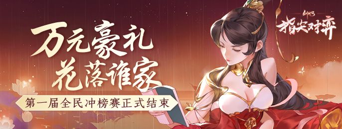 感谢各位侠士们精彩的对弈!虽然比赛终有得失成败,但热爱对弈的心永不停息!没有成功登榜的侠士请不要遗憾!新一轮的冲榜赛将于公测期间开启!更多名额,更大好礼,敬请期待!