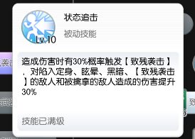 这个技能的效果是在攻击的时候,30%给目标挂上致残袭击的debuff,使得你对他的最终伤害提升30%。但是同时,这个技能触发的时候必定解除隐匿,所以这是一个实战与隐匿相冲突的被动技能。