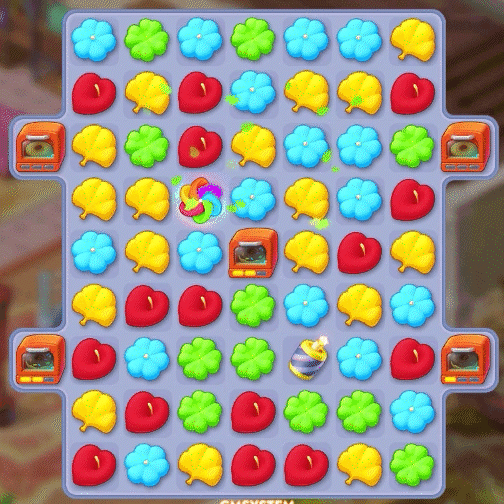在水瓶制造机旁边进行消除,可以让传送带向前传送水瓶。水瓶会随机散落在棋盘上,接下来正常消除即可。