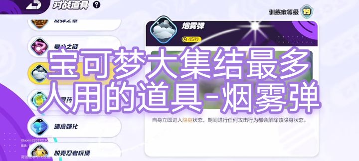 当前使用率最高的道具,最超模的道具烟雾弹,对决占比高达80%,除了防御和辅助型宝可梦,几乎人手一个。无论是打野也隐身支援,还是核心C位被突进烟雾弹一秒化解,都是必备之选。残血逃生更是让对手毫无办法。