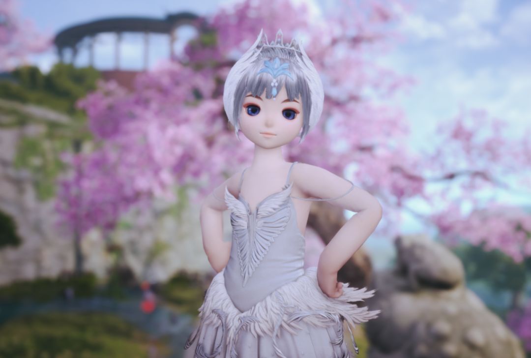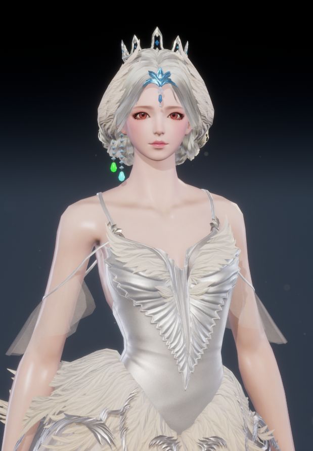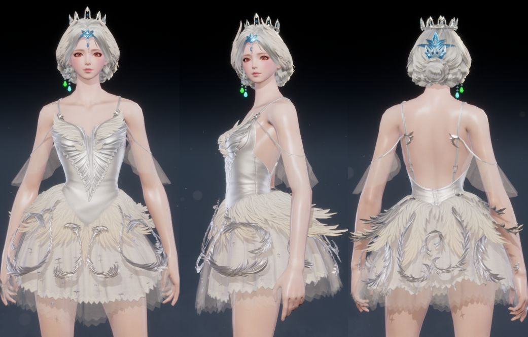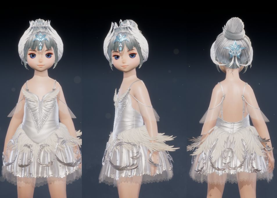 灵女的【时装】效果,如小天鹅的萌动之舞,可爱与优雅的完美融合。