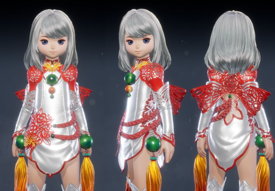 "风华正茂"源于中国传统民间艺术剪纸,具有浓厚的中国剪纸风格与古典旗袍结合。经典的剑灵时装,由国服玩家"牧童的短笛"设计。
