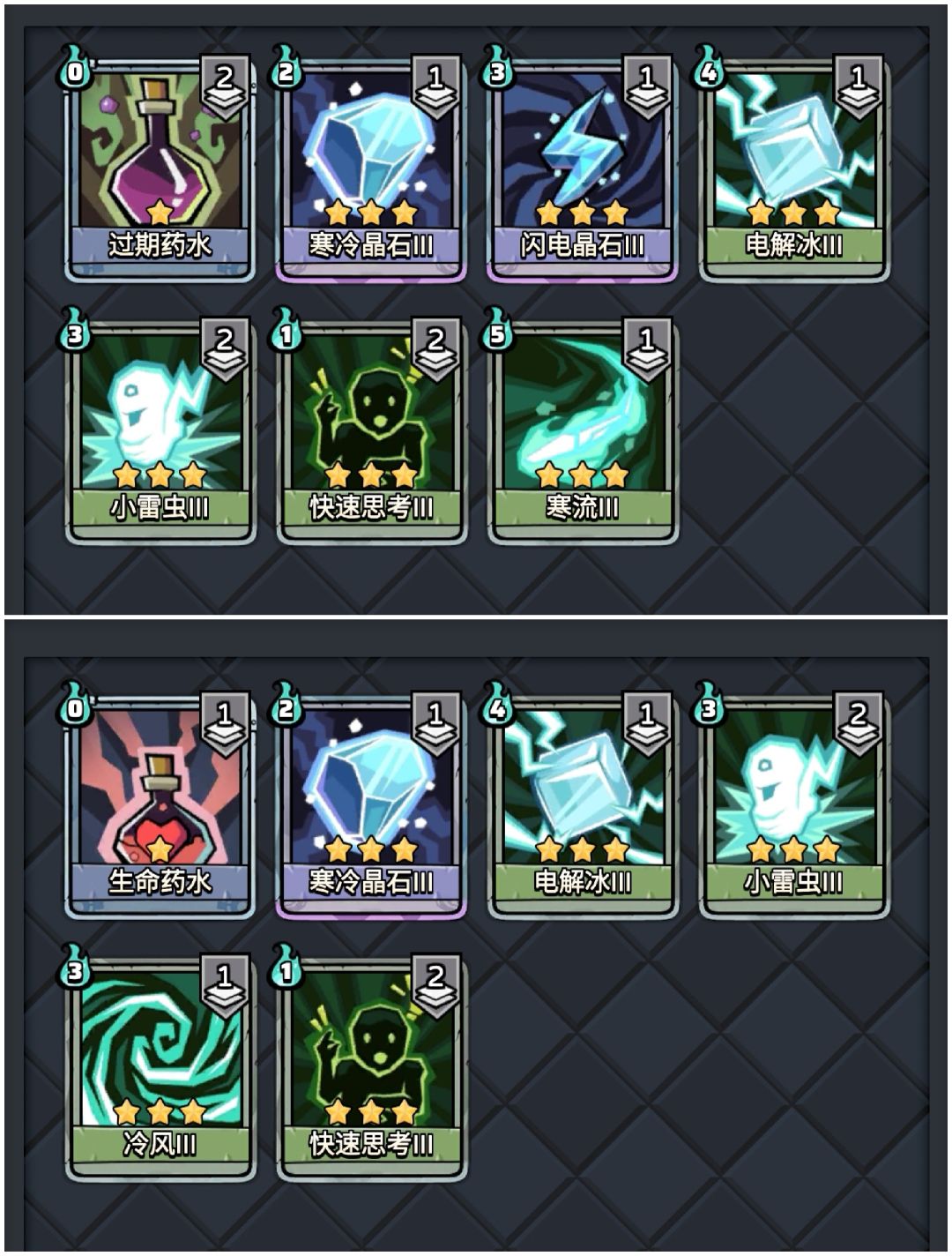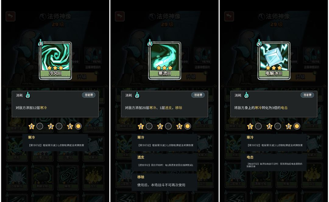 【冷风】 + 【寒流】能够产生 “寒冷”,然后【电解冰】能够产生高 “电击”!