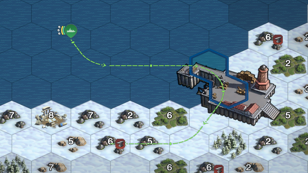 这意味着海上行动不需要逐格铺路,只需要存士气向前行军即可,因此通过海洋行军攻击和控制陆地十分迅捷和方便,在前期铺路控制陆地时有极大优势。