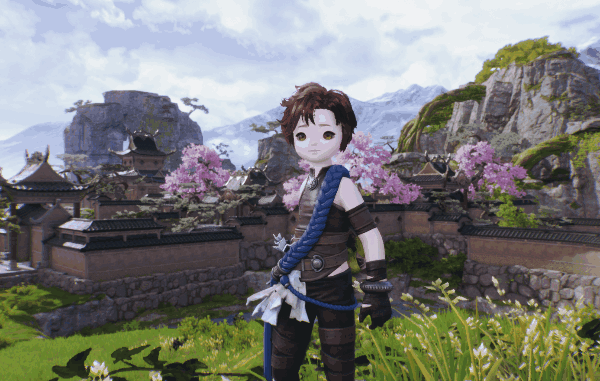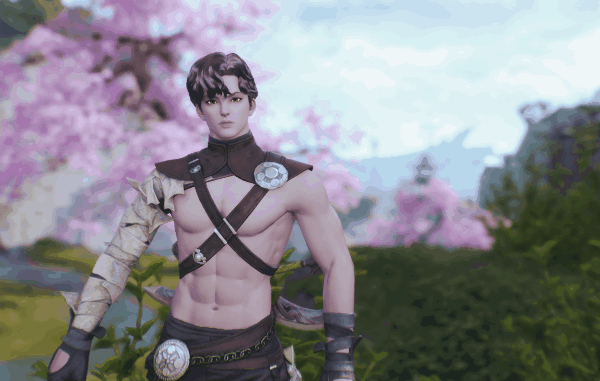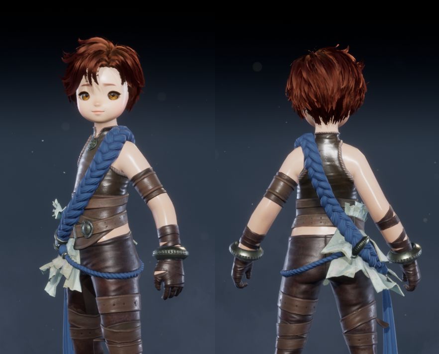 灵女和灵男的【隐山】时装,则多了斜挎的蓝色捆绳元素,更加增添了一模亮色和童趣之感!