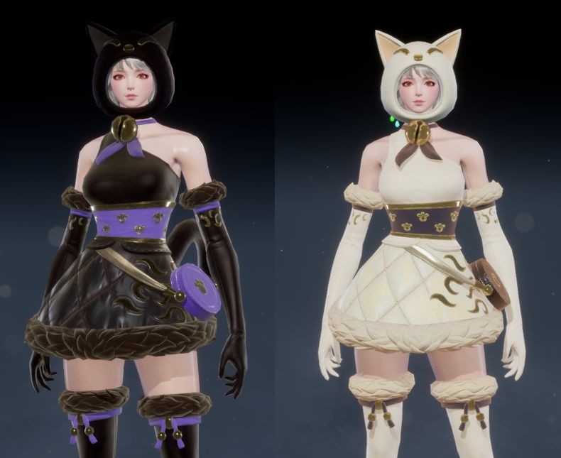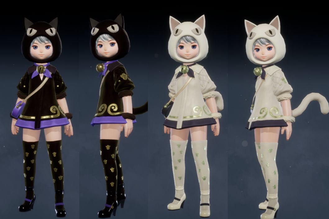 斜挎的紫色小圆包、颈部的清脆铃铛,搭配猫耳帽,让你瞬间化身为俏皮而魅惑的小黑猫。另一款白金配色,更添一份纯洁与可爱,宛如高贵的波斯猫,优雅而不失纯真。