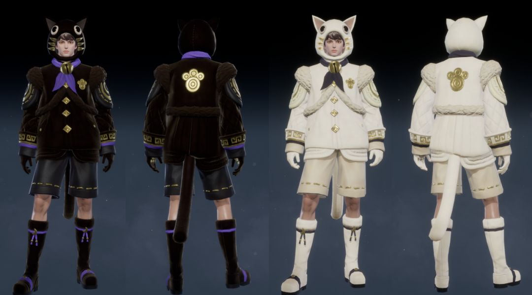 【巴隆族-暗黎】男装则更添一份典雅的贵族气息,后背有金色的猫咪爪印,镀金的纹饰纽扣,细节设计丰富。萌男出没,别具风格。