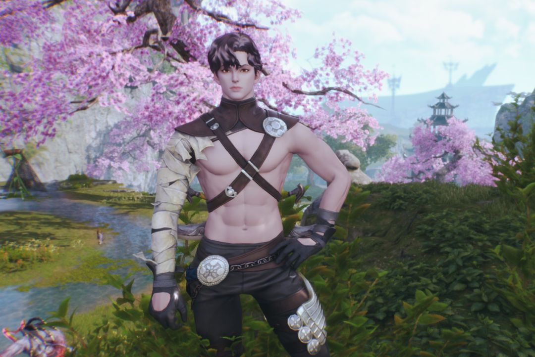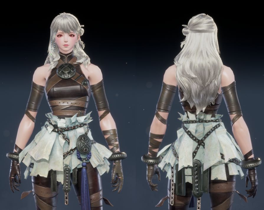 小细节装饰也同样颇为精致,手腕上戴着颇具质感皮具手环,腰部佩戴着金属锁链配饰和精致的铜牌装饰,颇具暗黑朋克的味道!很刚的风格!