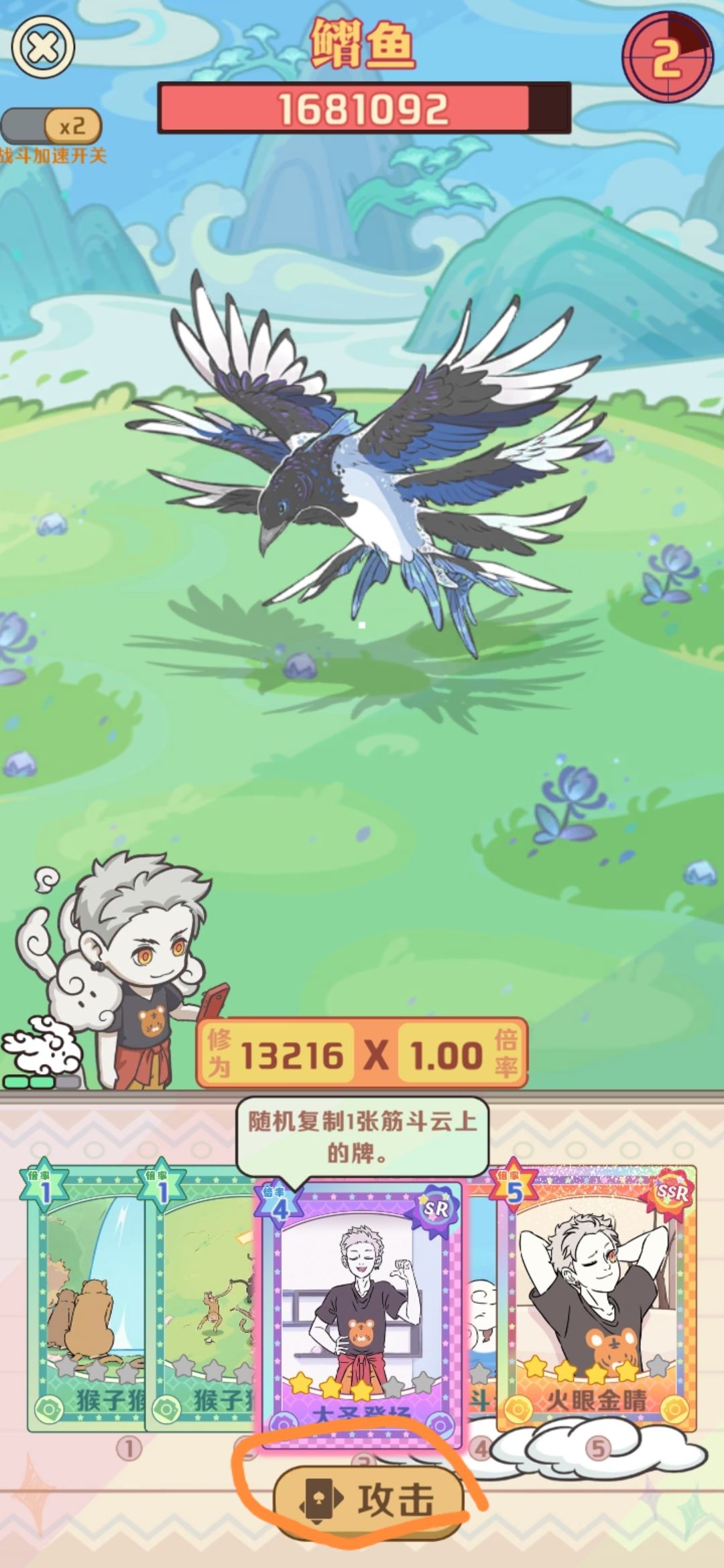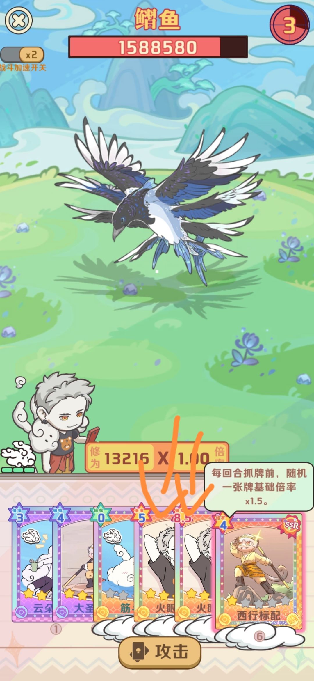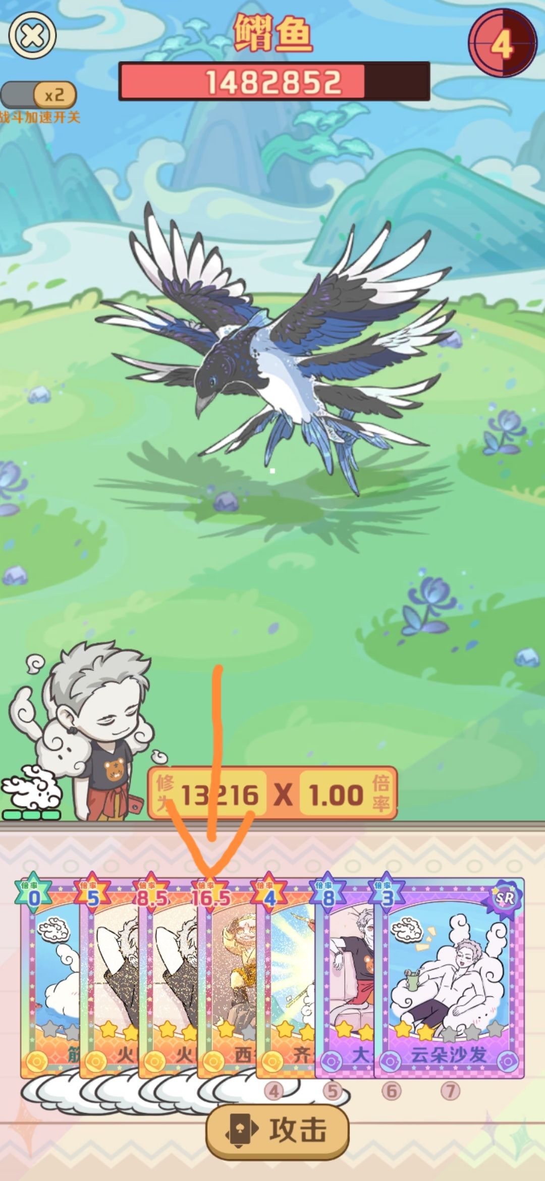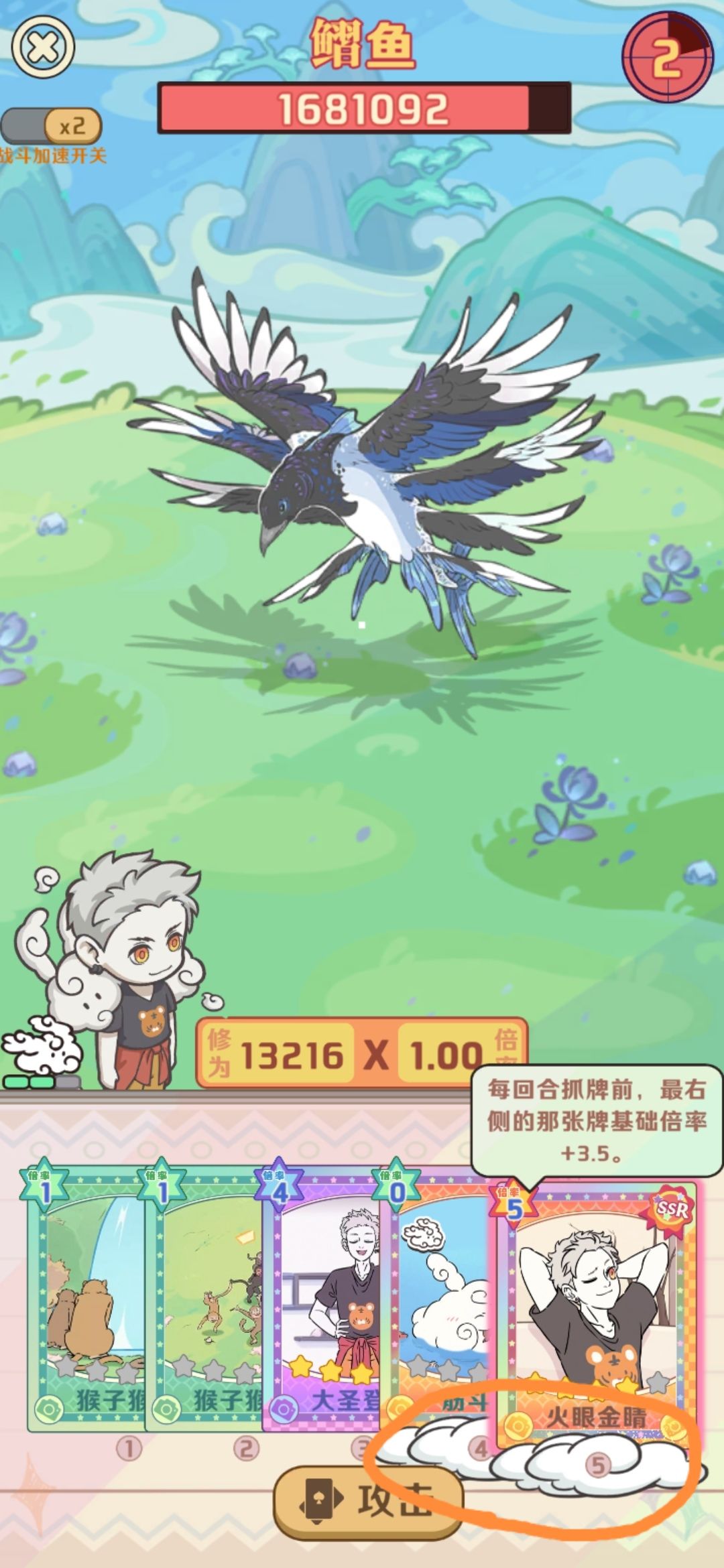图八,注意最后一回合,把筋斗云拖到最后,让所有牌生效,打出攒的倍率。