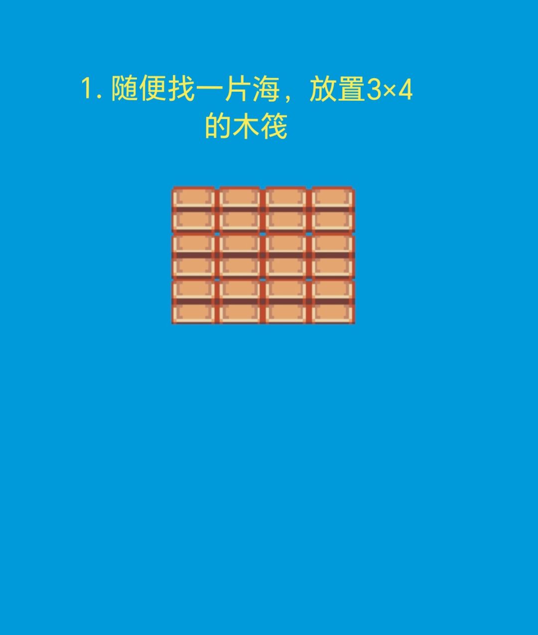 所需材料12块木筏,一个箱子,12个洒水器,一块田,若干捕鱼陷阱