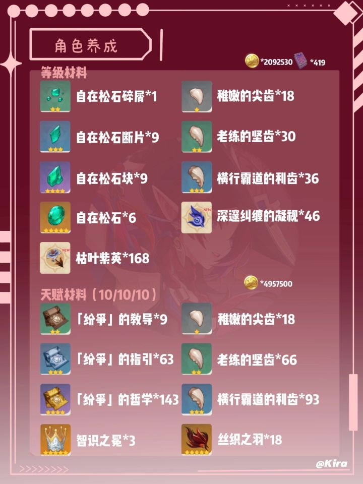 如图所示,这里是升满90级和天赋(10/10/10)所需的材料~需要打的周本是仆人!