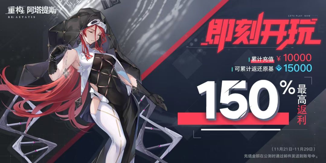 3. 在游戏正式上线后,使用本次参与测试的账号登陆,即可领取对应的充值返还奖励(返还的原基+内测充值限定礼包),一个账号的返还奖励只能领取一次,请确认好您的领取角色。
