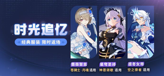 「时光追忆」服装补给开启,「蔷薇誓言」、「星穹圣诗」、「凛冬女帝」服装限时返场!