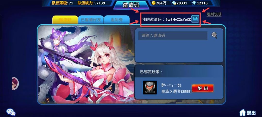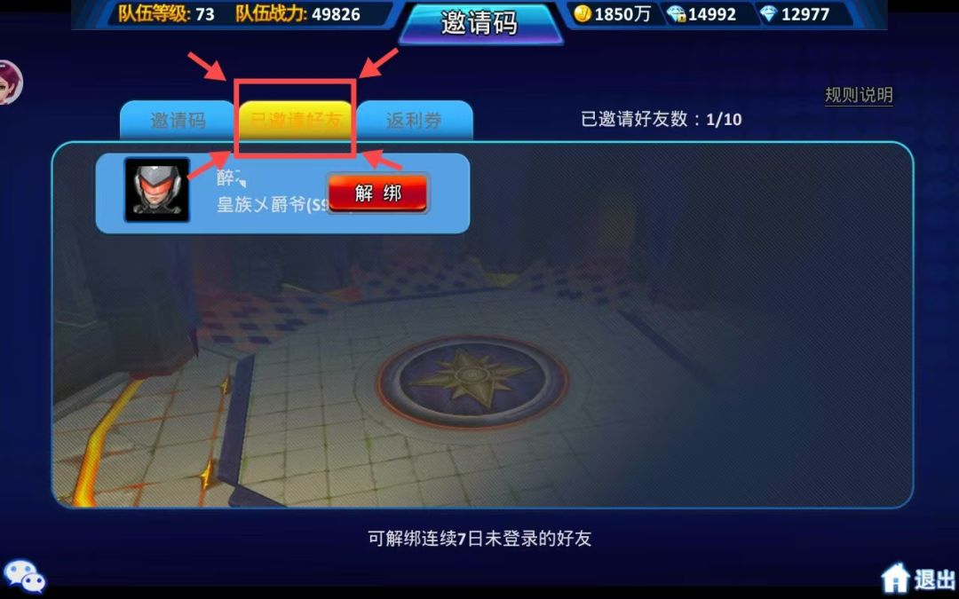注:单个玩家最多可邀请10个玩家,绑定10个邀请码。