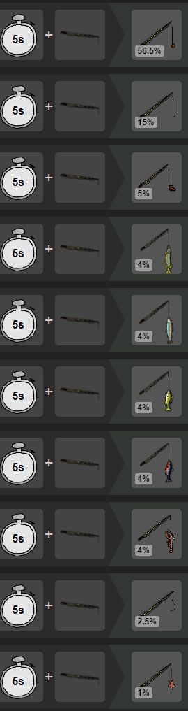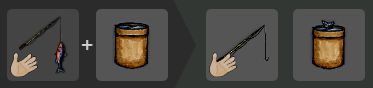 需要工具:钓鱼竿(紫杉木鱼竿,不要用小树枝鱼竿!!)、竹网、粘土罐、冰洞(钓鱼用,深水地形也可以钓鱼,本篇攻略以冰洞为例)、鱼饲料、空桶