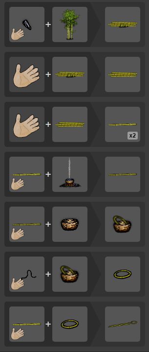 网站的合成表流程缺少一步,需要给无网竹网再加一根竹竿,不然放不上渔网