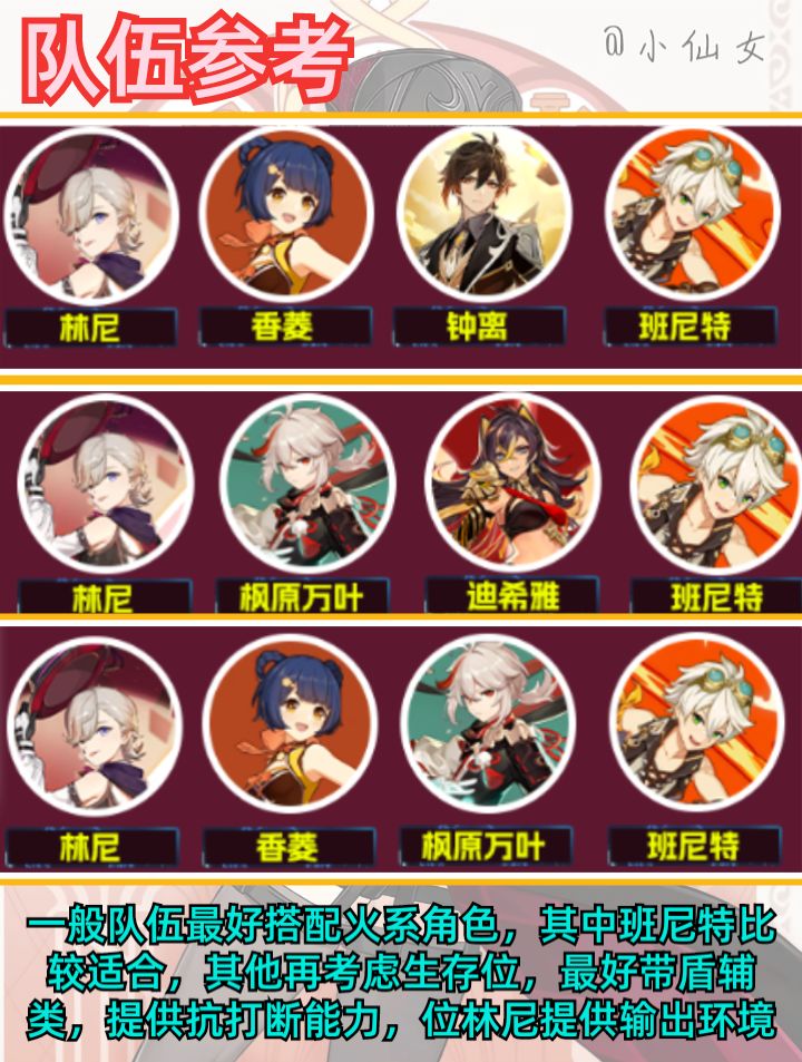 队伍在一定程度上刚需火系角色,成型后实战表现非常亮眼。