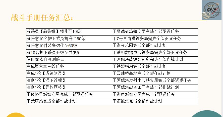 各位可进行参考。下面放上所有手册任务内容。