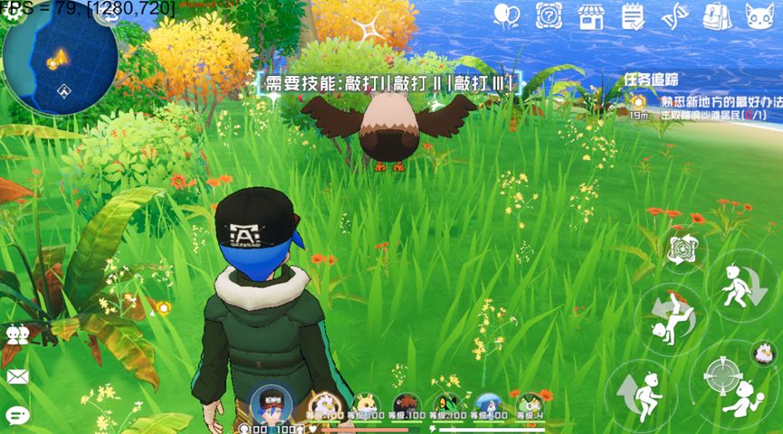 看见发光的物体后,点击投掷按钮,就可以召唤幻兽帮忙采集野外的素材了。不过请注意,必须要有携带相应技能的幻兽才可以完成采集。