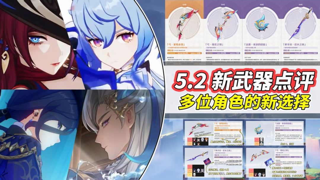 好好好,此次5.2版本新武器非常有诚意,实用性拉满!2弓1法器1单手剑,都能找到对应适配的角色,这期就来聊聊这四把武器的强度,以及契合角色,看其中是否有你常用角色~
