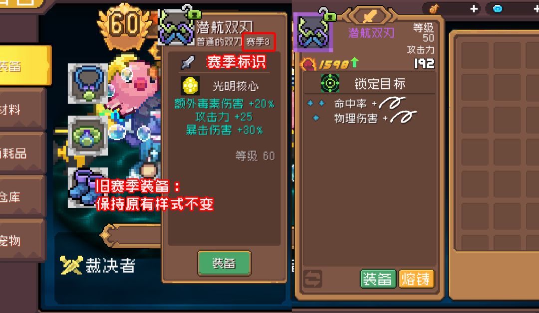 当查看装备时,装备会出现赛季标识或赛季序号。旧赛季获得的装备会保持原有样式不变。