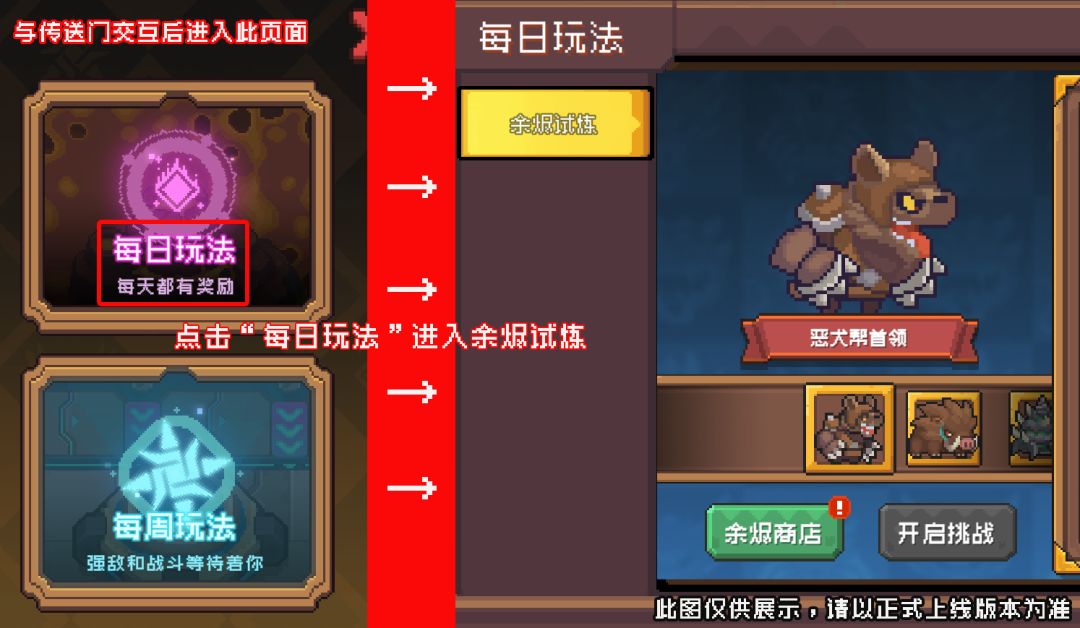 SS0赛季余烬试炼移动至游戏的“每日玩法”中,小骑士也可以在秋梨村左上角的通道进入余烬试炼。由于新赛季Boss出现机制调整,主线地图关卡会固定只出现1个Boss,其余Boss(黄金蟹、黑暗大骑士等)会放到余烬试炼和瓦尔基里试炼挑战中。