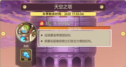 - 在天空之塔中,骑士的等级固定为1,每层的效果不同。