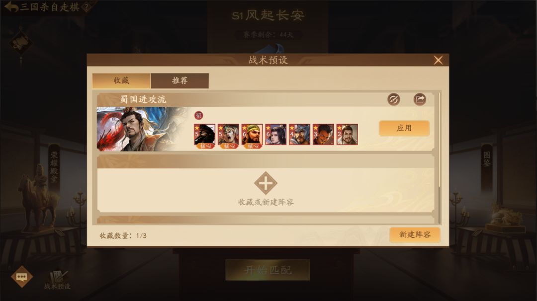 1、新增战术预设功能,玩家可在此板块添加/新建阵容,也可通过推荐页签查看/收藏阵容
