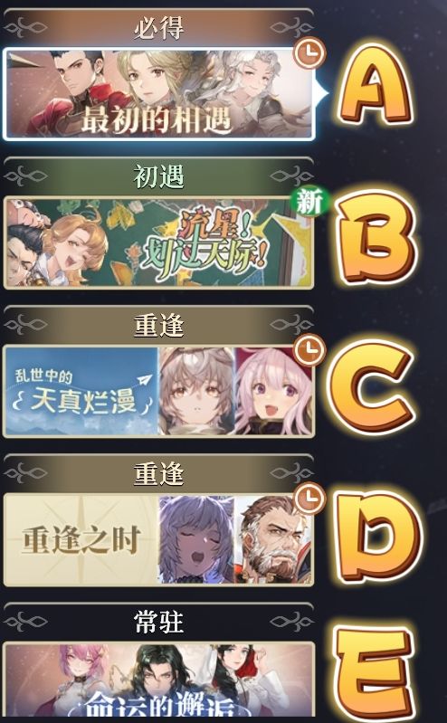 A-最初的相遇:俗称新手池,开局必抽,建议先抽。30发内必定出传说SSR卡,这张卡决定了你这个号能否能继续玩下去。