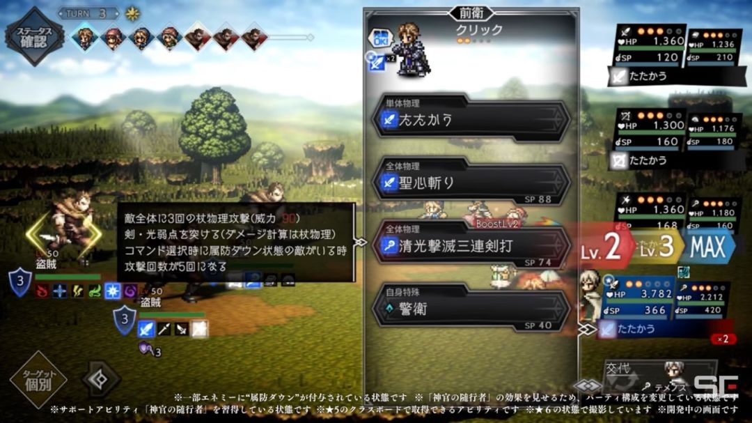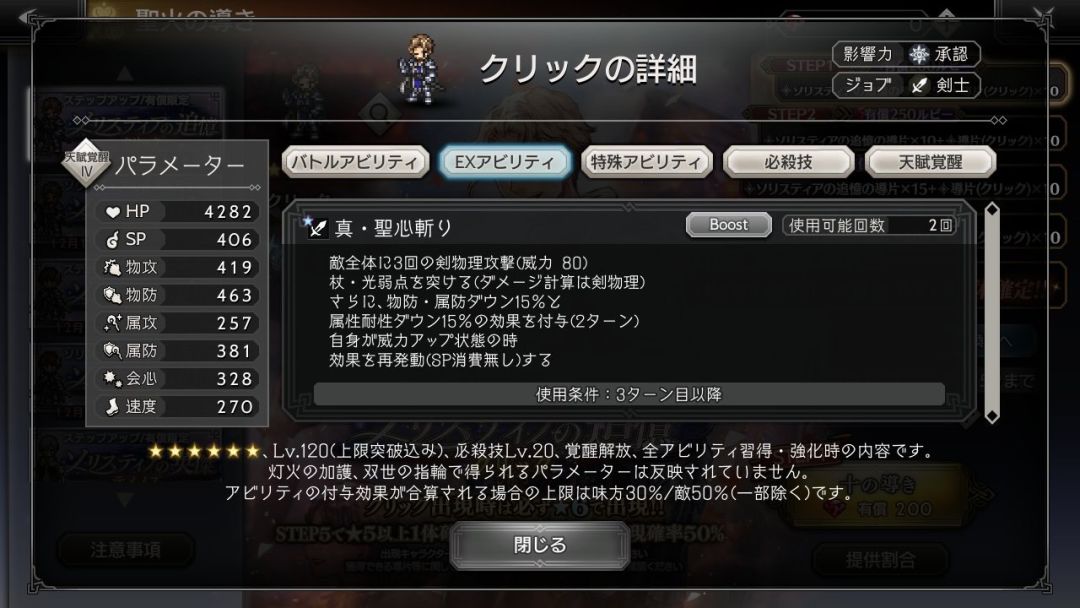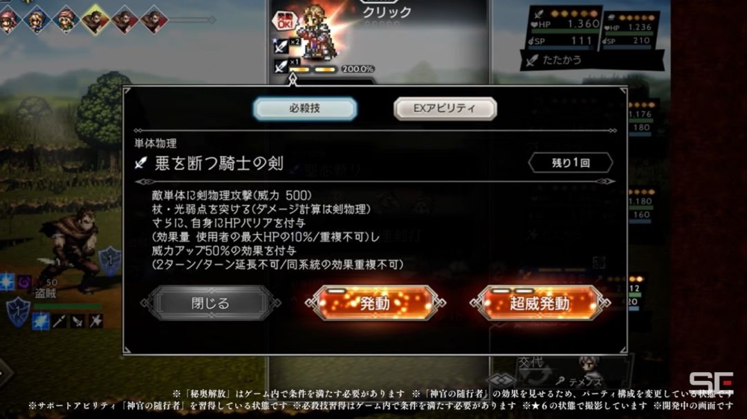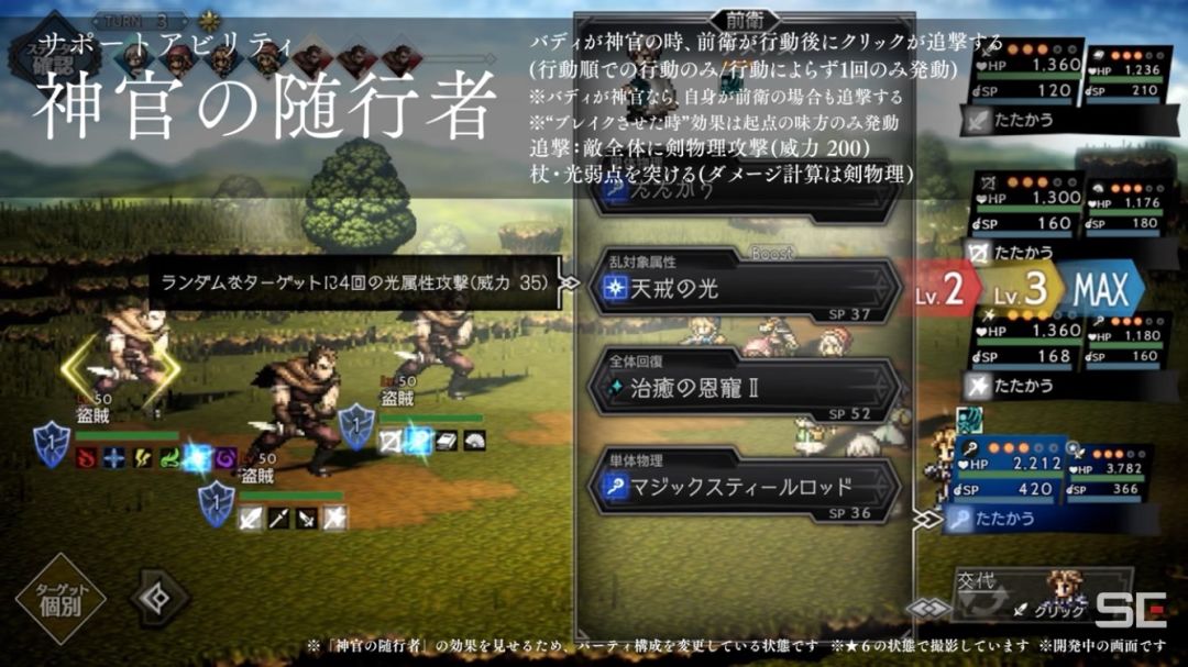 搭档是神官时,前卫行动后追击, 200剑物理全体(没有上一期的米迪雅追击猛)