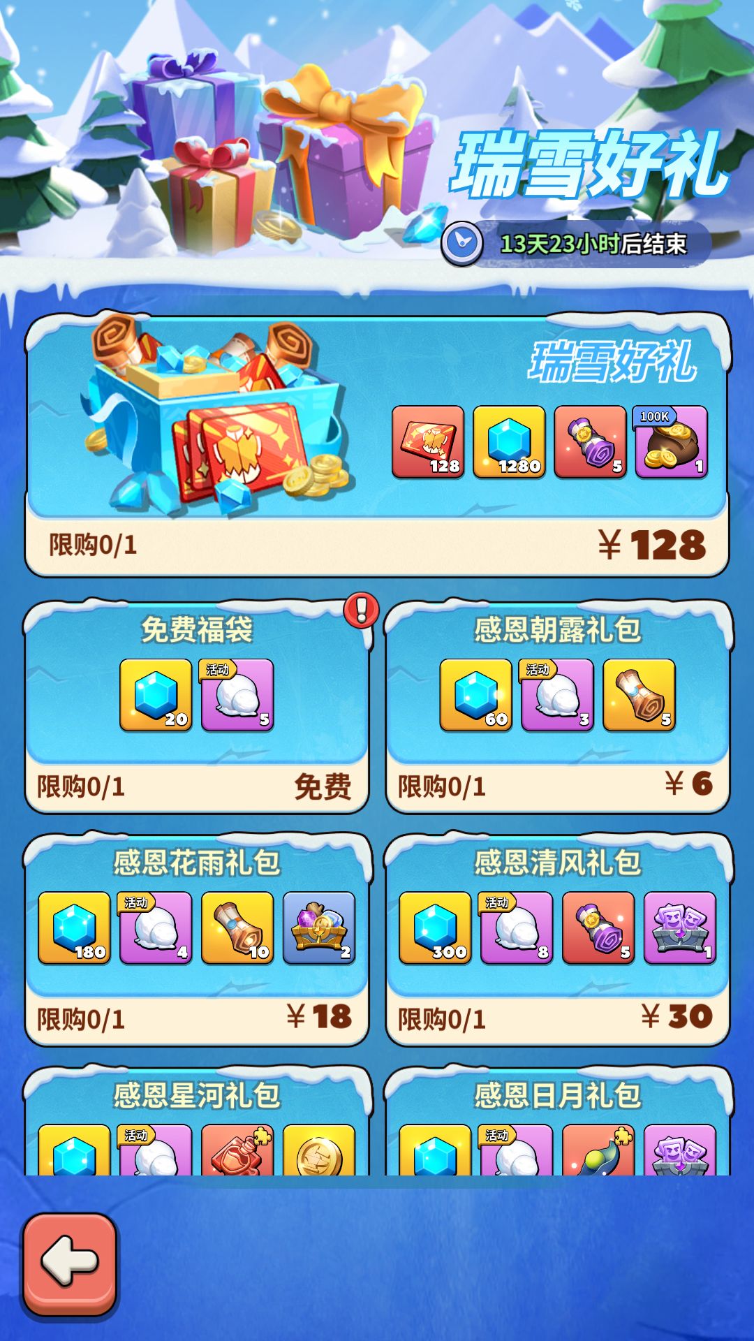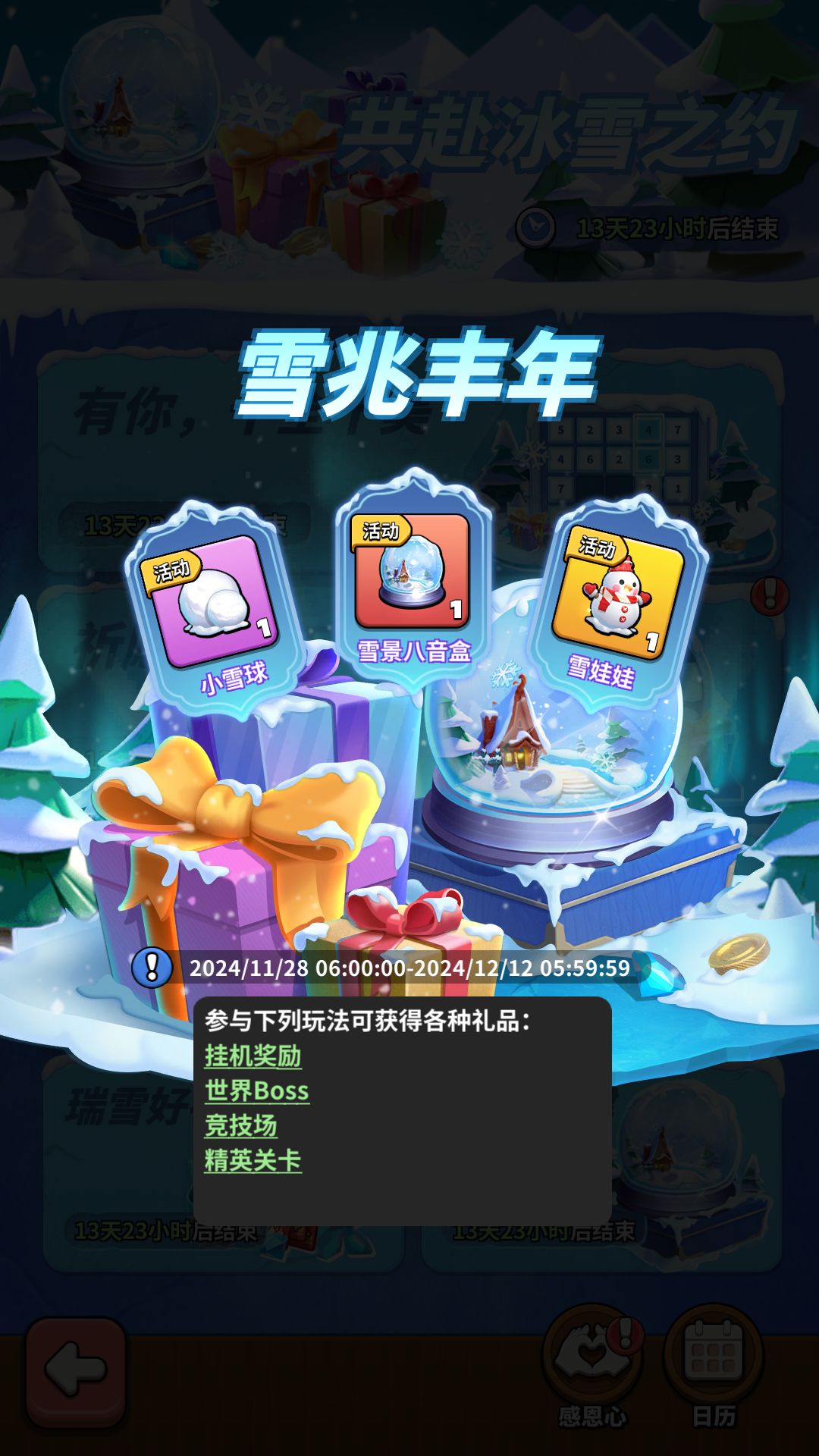 活动期间,可从多种途径获取品质不同的冰雪礼品。冰雪礼品可以直接使用,从中获取奖励!