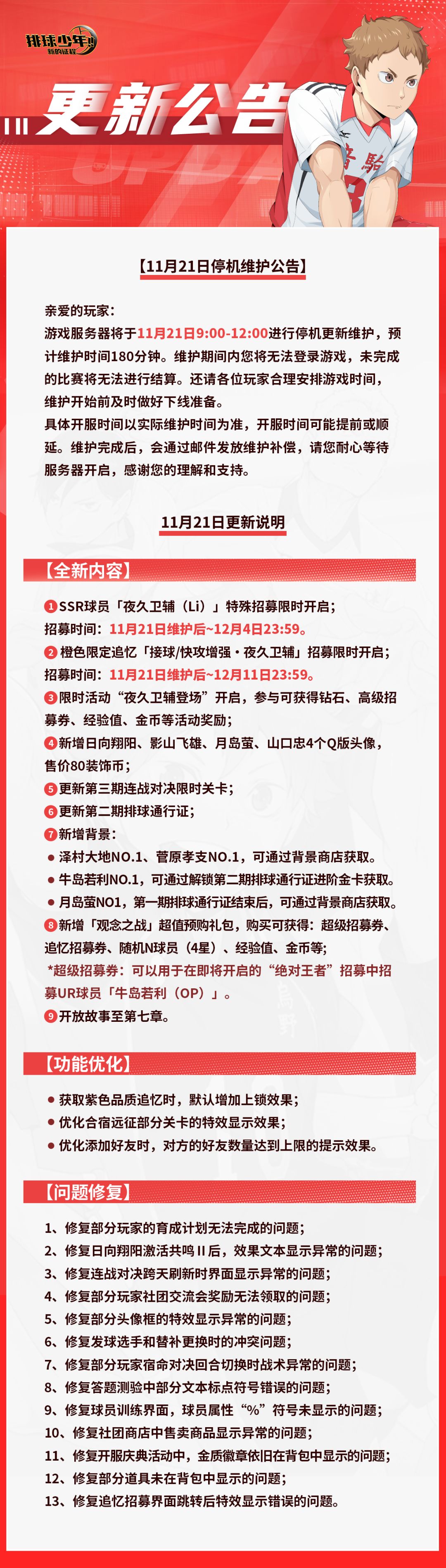 🎊11月21日更新维护公告🎊
