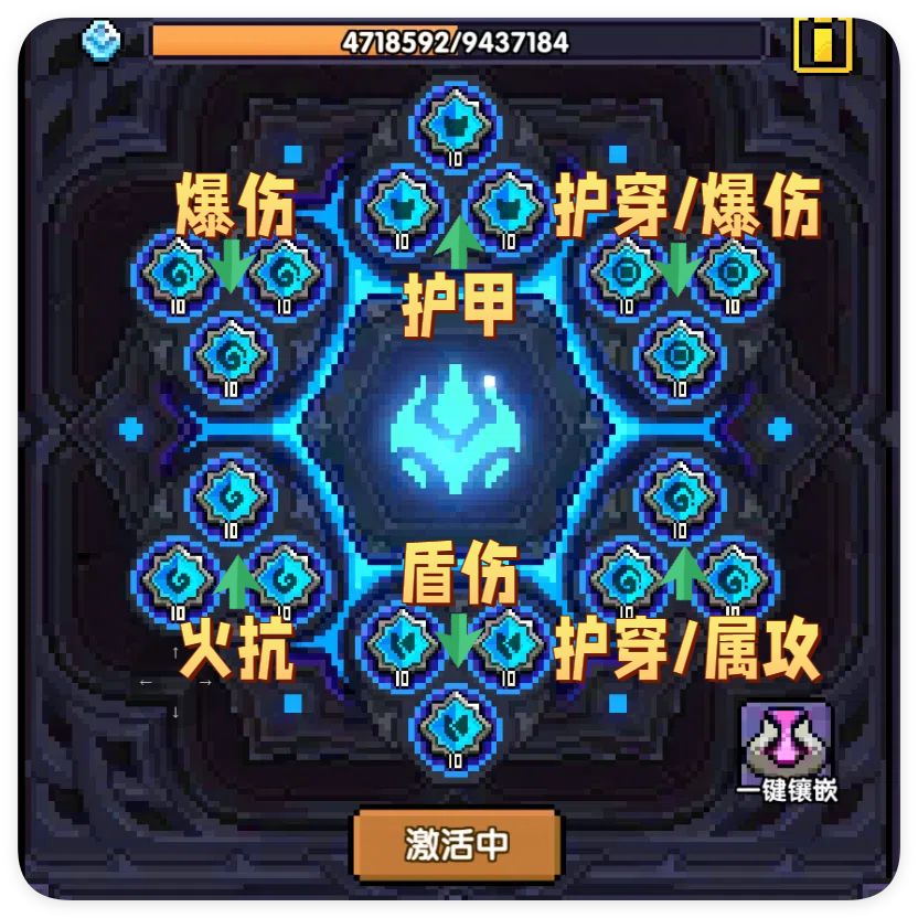 注意2:伤增+压制+克制为最优解,如果没有那么多毕业宝石,克制换成带点暴击,盾伤,属功的宝石也可以用。