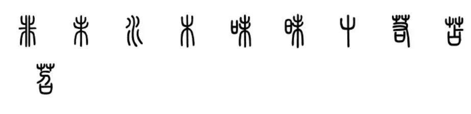 小篆“非”、“未”、“水”、“木”、“味”、“昧”、“屮“、”若“、“苫”、“苕”