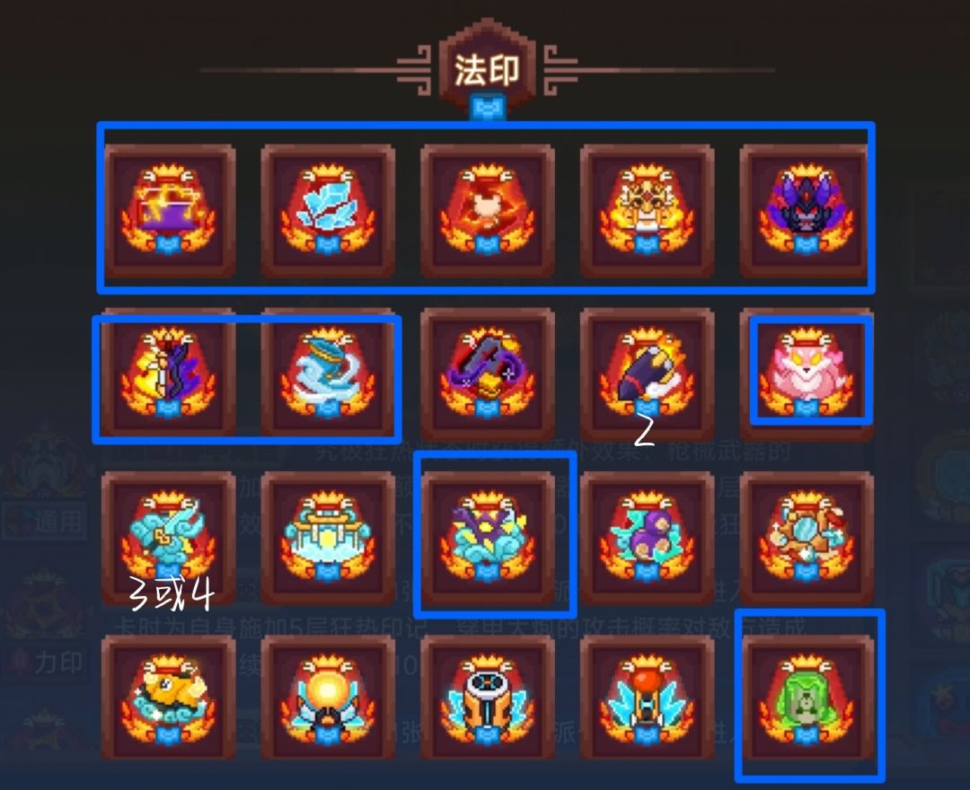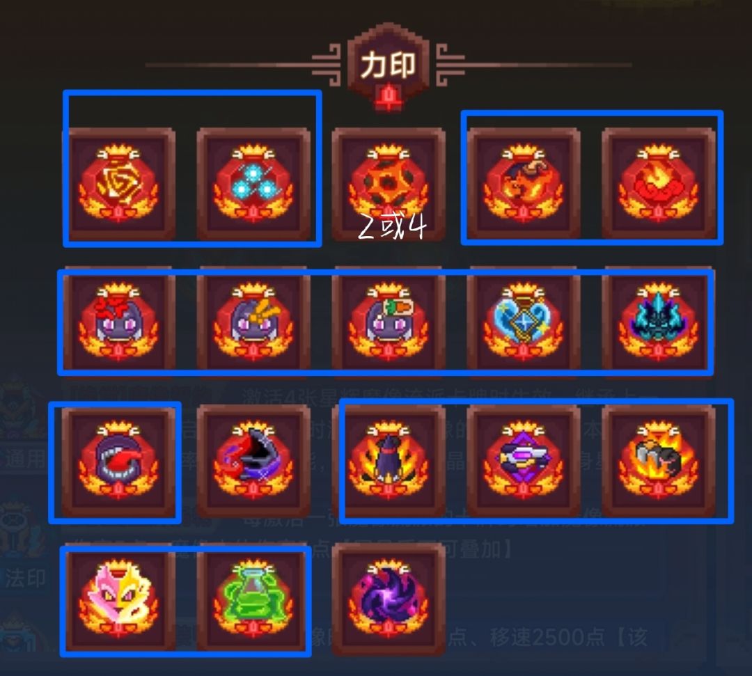 二、现在我们步入正题,2024周年庆版本个人推荐魔印保留,下放图片中蓝框圈选的魔印为可选分解魔印!!!