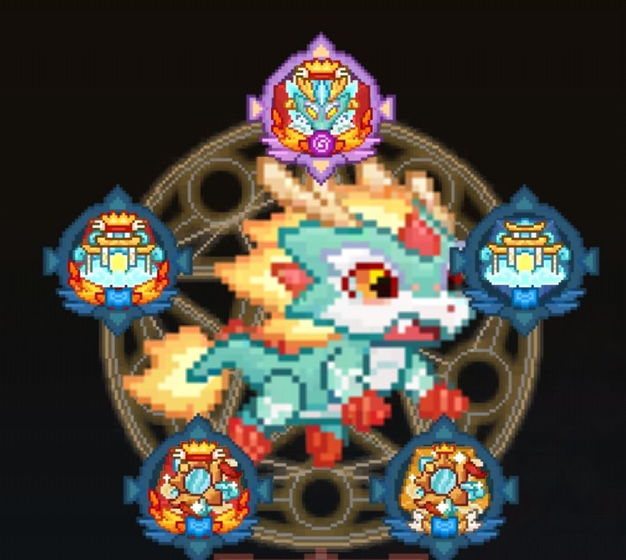 一、首先随着游戏中猎魔之路任务的推进,我们解锁了守护兽以及魔印系统,我们首先了解一下魂印、法印、力印、护印是什么样子,以我们无敌的小火龙为例: