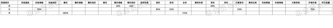 英魂限定数值如下: