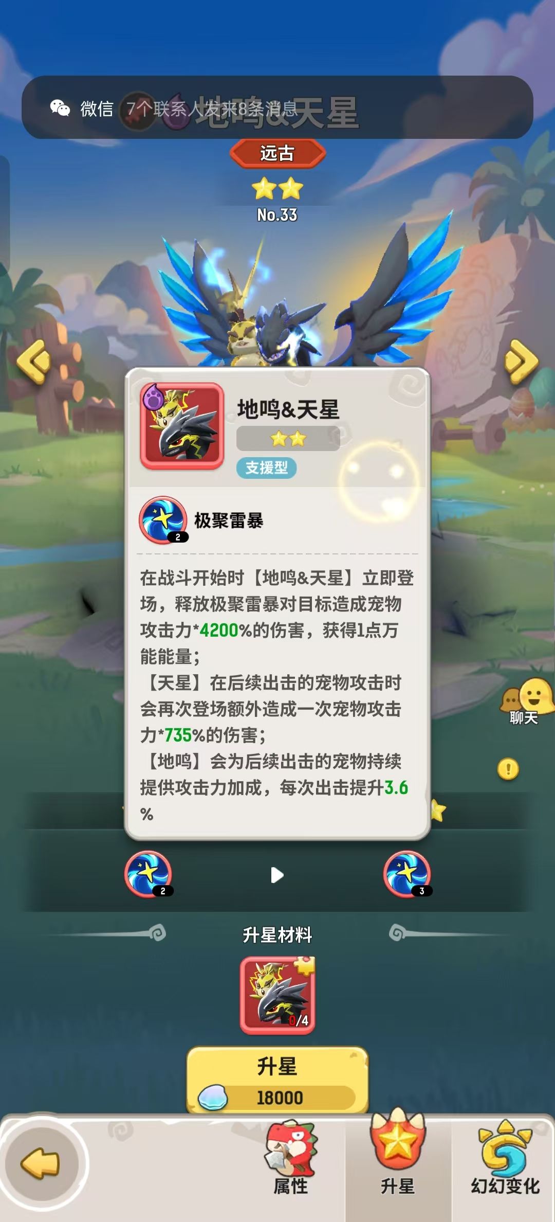 大概在不久的将来会有一大批玩家可以合成原始地鸣天星(注:获取方式原为十区狩猎王队伍四人可获得,现在跨服赛季根据排名可以开出碎片进行合成),地鸣天星的效果还是很厉害的,附图: